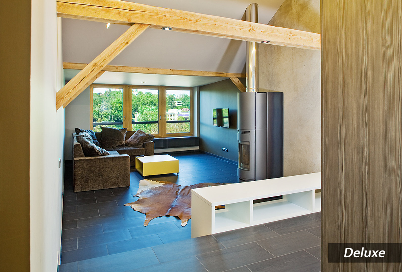 Apartament został stylowo urządzony w żywych barwach. Do dyspozycji Gości jest telewizor z płaskim ekranem, kominek oraz łazienka z wanną i bidetem.